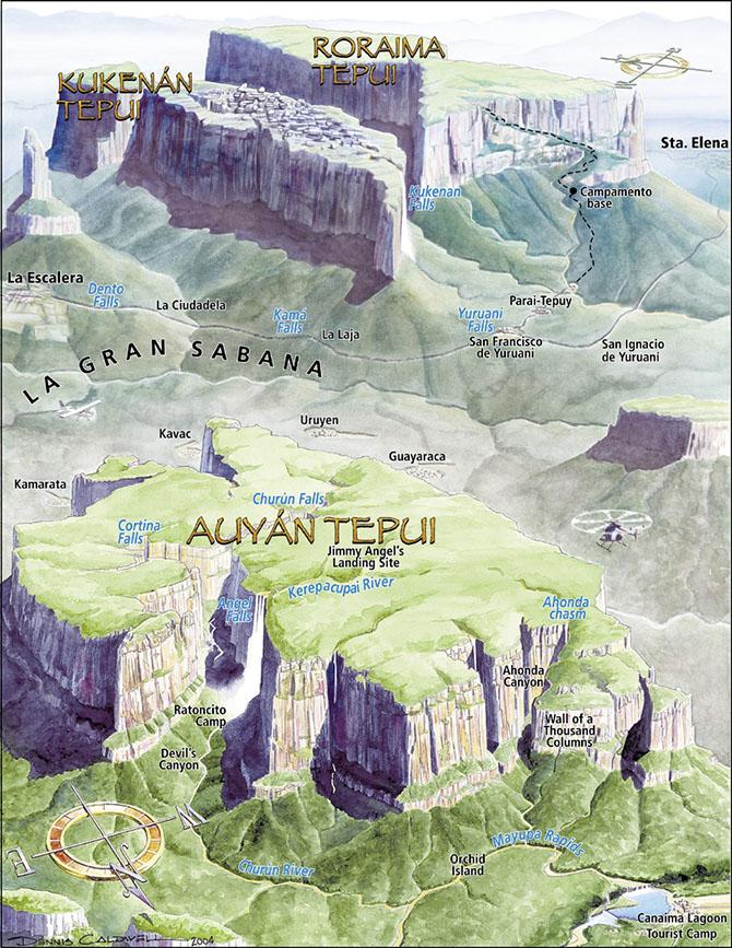 Ученые утверждают, что эти горы, состоящие из твердого песчаника, с крутыми, почти отвесными склонами и плоскими, усеченными вершинами, — древнейшие в мире. Они образовались вследствие разрушения огромного плато, в доисторические времена простиравшегося от берегов Атлантического океана до границ бассейнов рек Ориноко, Амазонка и Риу-Негру. Еще в те времена, когда Африка и Южная Америка были единым целым, около 200 миллионов лет назад, это плато возникло на месте гигантского озера.